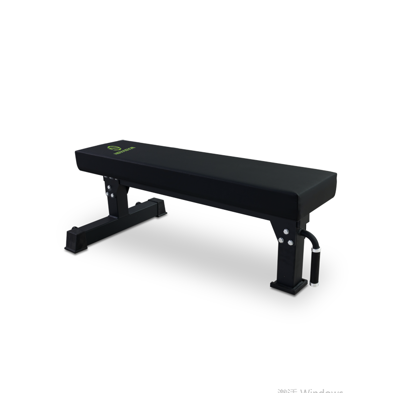 The overall design is a single-piece flat shape with no angle adjustment mechanism, focusing on basic strength training exercises like bench presses and flat flyes. The bottom’s slip-resistant footpads enhance stability upon landing. It is suitable for home fitness and small-scale gyms. The black matte finish combines durability with a minimalist aesthetic, making it an ideal choice for basic strength training.