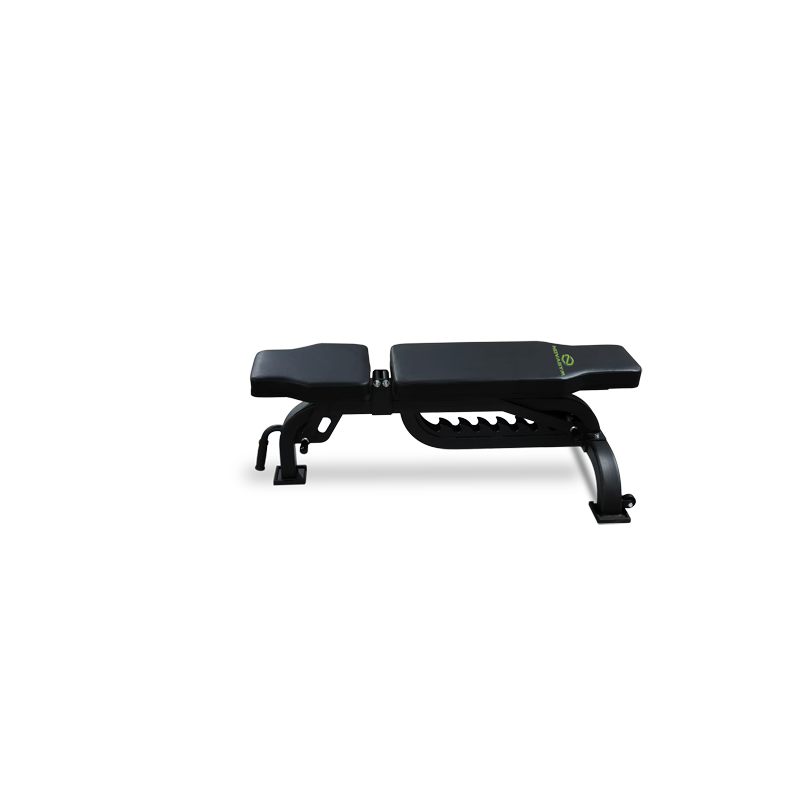 The overall design is a single-piece flat shape with no angle adjustment mechanism, focusing on basic strength training exercises like bench presses and flat flyes. The bottom’s slip-resistant footpads enhance stability upon landing. It is suitable for home fitness and small-scale gyms. The black matte finish combines durability with a minimalist aesthetic, making it an ideal choice for basic strength training.